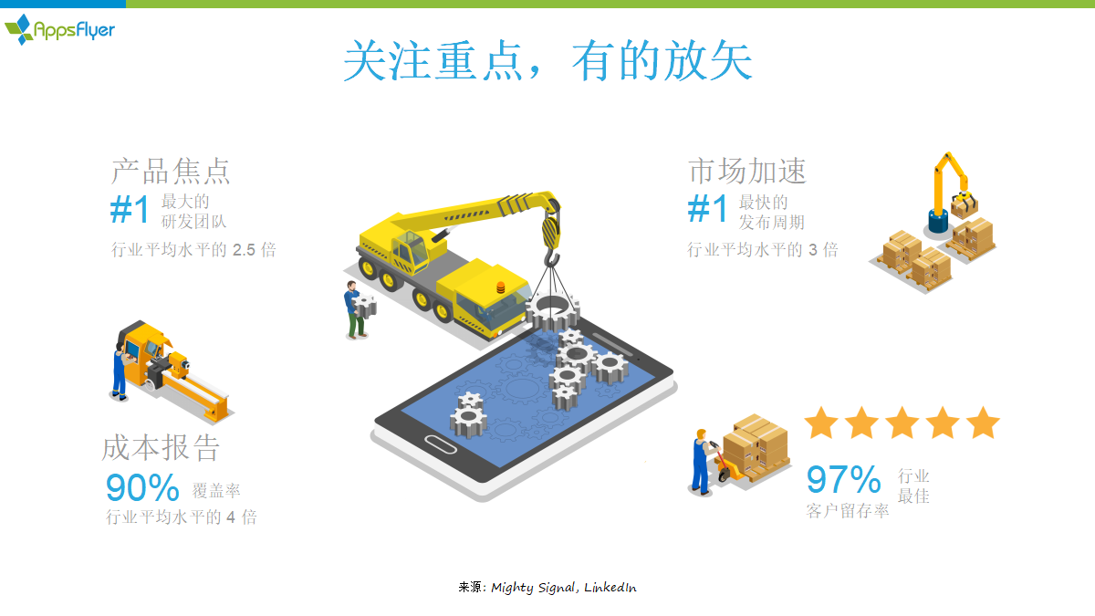 AppsFlyer是一家总部在以色列的创业公司,专注于移动广告效果监控和数据分析。公司成立于2011年,并于2017年1月获得C轮5600万美元融资。基于几家第三方公司的评估,我们占据了国内移动互联网出海80%的市场份额。