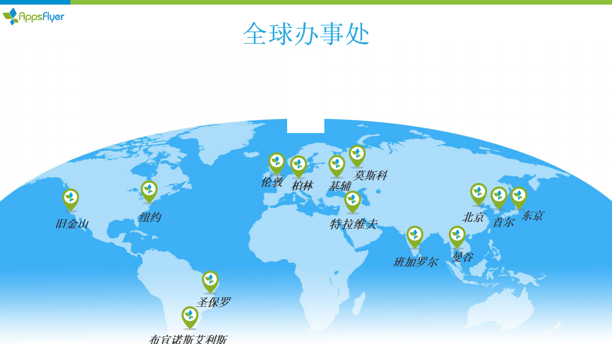 AppsFlyer 在全球共有 18 个办公室,为各大地区提供脚踏实地的服务。AppsFlyer 团队都来自于本地,与地区移动经济动态高度结合,与客户建立维护紧密的合作关系。