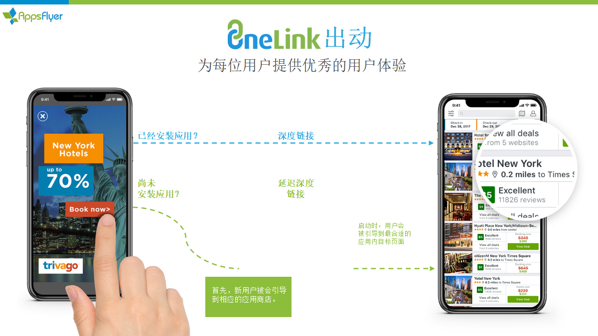 强大的 OneLink 打造流畅用户体验,即使安装后也能将用户带至应用内最佳销售点。