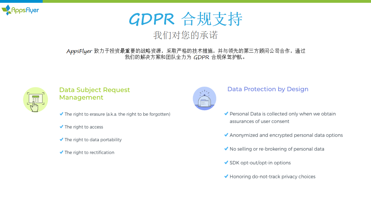 隐私安全没有保障的移动归因会对你的业务带来损失。这就是为什么 AppsFlyer 将数据安全与隐私视作第一位,不断更新产品基建,统筹内外部隐私安全措施,保证与国际最严格标准和数据政策合规。