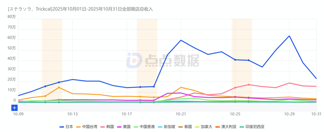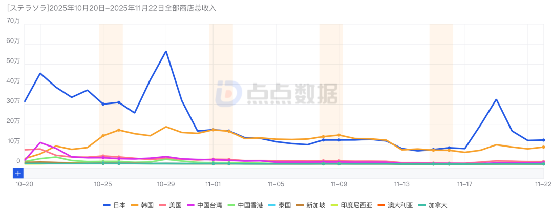 收入方面,截至11月22日,双端收入预估9319万元(扣除平台分成)。其中日本市场占比约为52.25%。